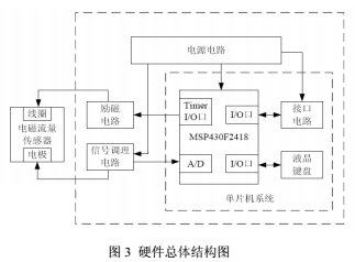 用于固井泥漿的電磁流量計(jì)的硬件部分主要由傳感器、電源電路、勵(lì)磁電路、信號(hào)調(diào)理電路、信號(hào)采集處理電路及接口電路等模塊組成,如圖3所示。本文重點(diǎn)介紹關(guān)鍵模塊勵(lì)磁電路和信號(hào)調(diào)理電路。
