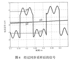 對于基線零點漂移,“正負差值法”是比較有效便捷的選擇,它不需要直接消除信號中的基線零點漂移,而是通過算法上去掉基線零點漂移對測量結(jié)果的影響。該系統(tǒng)中,激磁信號的頻率為6.25Hz,由于所測量的液體流速不會有明顯的突變,所以在信號的一個周期0.16s內(nèi),可以采用一個波峰減去波谷的均值來表示此時的流量信號,也即如圖3中|y4-y1|其中y4是從nT+T/4到nT+T/2采樣結(jié)果的算術(shù)平均值,y1是從到(n+1)T進行采樣結(jié)果的算術(shù)平均值。但是由于斜率零點漂移的存在,會出現(xiàn)如圖3中|y3-y2|的誤差,所以需要利用式(15)的結(jié)果對該誤差進行修正,修正后的結(jié)果也就是此時管道中液體感應(yīng)出的電動勢為: