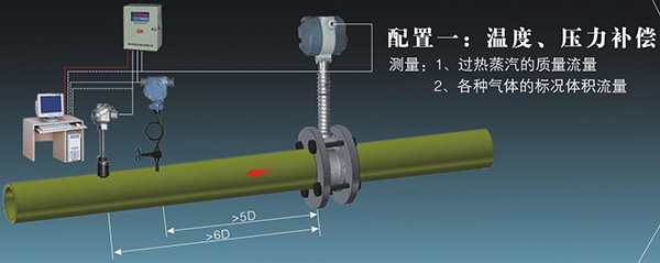 5、表體中同時集成溫壓補償補償功能,可測量流體的標準體積流量或標準質(zhì)量流量。