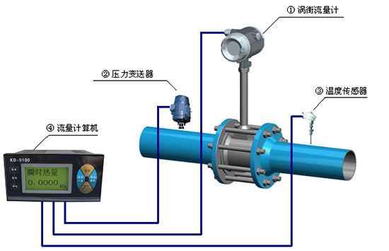 渦街流量計(jì)是以全新的設(shè)計(jì)理念,將溫度、壓力、流量信號(hào)集于一體,通過智能數(shù)字處理器將三種信號(hào)混合處理后輸出一個(gè)補(bǔ)償后的標(biāo)準(zhǔn)流量,從而實(shí)現(xiàn)了對(duì)氣體、蒸汽的溫壓補(bǔ)償功能。由于采用了智能一體化的設(shè)計(jì)理念,因此,凱銘渦街流量計(jì)具有結(jié)構(gòu)緊湊、安裝使用維護(hù)方便的特點(diǎn)。