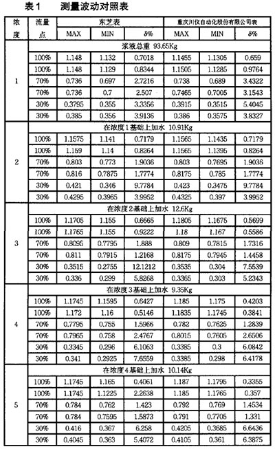 在造紙行業(yè)有大量的紙漿液體需要測量,就會用到大量的流量測量儀表,目前在造紙行業(yè)中用于測量流量的儀表,主要有測礦漿管道流量計等儀表,因為測礦漿管道流量計具有非常強的優(yōu)點,所以非常適合在紙漿的流量測量中使用。在紙漿實驗裝置上,使用串聯(lián)在同一管道上該公司生產(chǎn)的漿液型測礦漿管道流量計與日本東芝的漿液型測礦漿管道流量計測量不同濃度和流量的紙漿漿液,以驗證其可靠性。波動率對比實驗結(jié)果表明,該產(chǎn)品用于紙漿漿液測量時能夠很好地克服漿液噪聲。在滿流量測量時,上述實驗中各濃度下漿液測量穩(wěn)態(tài)波動率均在1%以內(nèi);其它流量下測量時,由于實驗系統(tǒng)主管道上游分流控制流速不穩(wěn),進而導(dǎo)致測量穩(wěn)態(tài)波動率相對較大,甚至達到近7‰ 但由表1可知,在各種漿液濃度及各流量點下,凱銘儀表有限公司生產(chǎn)的漿液型測礦漿管道流量計的穩(wěn)態(tài)波動率始終與日本東芝漿液型測礦漿管道流量計的測量結(jié)果一致,從而表明實驗系統(tǒng)的測量結(jié)果能準確反映實際漿液流量大小。 說明:MAX、MIN分別表示該組數(shù)據(jù)測得流速的的*大值和*小值,單位m/s。
