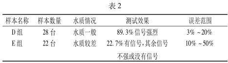 當然除了管徑這一大因素外,污水水質(zhì)的好壞也是一個影響檢測效果的原因。把受檢的 50 臺流量計所流過的水質(zhì)分為兩組,水質(zhì)一般 D 組和水質(zhì)較差 E 組。整理數(shù)據(jù)見表 2。