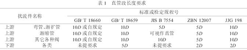 (1)對安裝管路的要求.實(shí)際工程上,電極平面處的流速分布已同初校時(shí)有較大的差別,傳感器上游管道連接件的配置是引起特殊的流速分布的因素之一,使用中就有可能出現(xiàn)量值偏移.對傳感器前后直管段的要求是保證流速以中心軸為對稱分布,獲得儀表測量精確度的必要條件之一,國標(biāo)GB/T18659-2002等列舉了對漸縮管、上游閥、圓弧彎頭*小直管段長度的要求(見表1).