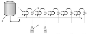 圖6 流量計(jì)和閥門(mén)的安裝位置示意圖(1代表灌裝流量計(jì))