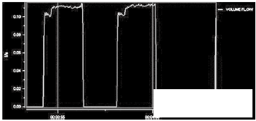 灌裝頭的*終出口部分為10~14mm的可更換縮口。通過(guò)縮口,可以產(chǎn)生背壓,一般縮口內(nèi)置蜂窩狀虹吸管,保證灌裝前后的管道滿(mǎn)管。從測(cè)試的流量波形上看,10mm的灌裝頭產(chǎn)生適當(dāng)?shù)淖枘嵝Ч?,流量曲線較穩(wěn)定。