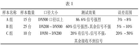 通過大量的在線檢測試驗(yàn),可以看出所測管道管徑對超聲流量計(jì)測試效果有明顯影響。根據(jù)數(shù)據(jù)顯示,管徑越大,測試效果越好,示值誤差越小。隨著管徑的減小,超聲流量計(jì)所能檢測到的流速信號也隨著變?nèi)?,?dāng)口徑小于 DN50 時(shí),基本沒有信號或是產(chǎn)生巨大的干擾信號。