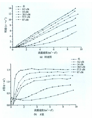 圖1甲醇介質(zhì)流量計(jì)對不同茹度條件的響應(yīng)轉(zhuǎn)速圖和K值