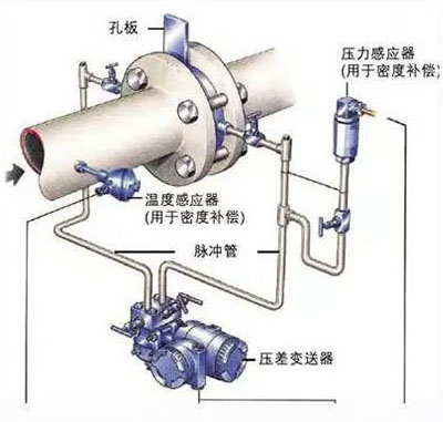 氣體流量計(jì),就是在管道內(nèi)部加裝一個(gè)中間開孔的圓板,然后測量蒸汽在孔板前后的壓力差,經(jīng)過計(jì)算換算出蒸汽的流量。