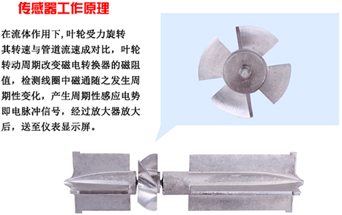 渦輪流量計采用渦輪進行測量。它先將流速轉(zhuǎn)換為渦輪的轉(zhuǎn)速,再將轉(zhuǎn)速轉(zhuǎn)換成與流量成正比的電信號。這種流量計用于檢測瞬時流量和總的積算流量,其輸出信號為頻率,易于數(shù)字化。圖中感應(yīng)線圈和永久磁鐵一起固定在殼體上。當(dāng)鐵磁性渦輪葉片經(jīng)過磁鐵時,磁路的磁阻發(fā)生變化,從而產(chǎn)生感應(yīng)信號。信號經(jīng)放大器放大和整形,送到計數(shù)器或頻率計,顯示總的積算流量。同時將脈沖頻率經(jīng)過頻率-電壓轉(zhuǎn)換以指示瞬時流量。葉輪的轉(zhuǎn)速正比于流量,葉輪的轉(zhuǎn)數(shù)正比于流過的總量。渦輪流量計的輸出是頻率調(diào)制式信號,不僅提高了檢測電路的抗干擾性,而且簡化了流量檢測系統(tǒng)。它的量程比可達10:1,精度在±0.2%以內(nèi)。慣性小而且尺寸小的流量計的時間常數(shù)可達0.01秒。
