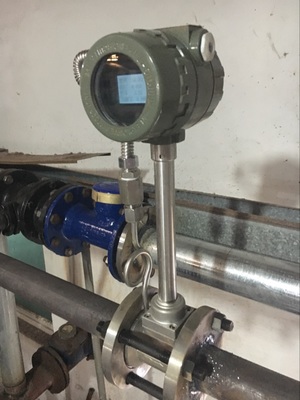 2、溫度補償一體型渦街流量計還帶有溫度傳感器,可以直接測量出飽和蒸汽的溫度并計算出壓力,從而顯示飽和蒸汽的質(zhì)量流量。