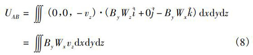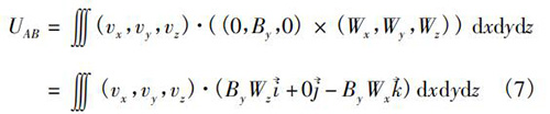 式中V為電磁污水流量計(jì)傳感器測量空間;W→為權(quán)函數(shù)。在直角坐標(biāo)系(x,y,z)中,式(5)可以轉(zhuǎn)換為