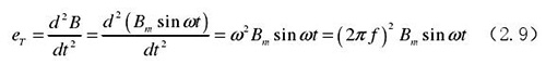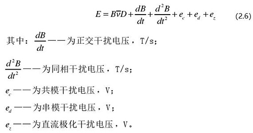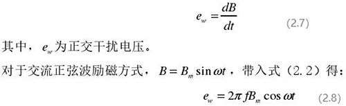 從上圖 2.5 中可以觀察到兩個電極、勵磁線圈、轉換器內阻之間形成了一個閉合回路,將此回路稱之為初級繞組,從理論上進行分析,磁力線 B 應當平行于勵磁線圈所產生的磁感應線,但在實際的應用過程中由于工藝差異,因此無法達到理想狀態(tài),會產生磁力線穿過勵磁線圈磁感應線的情況,此時將會產生相應的感應電動勢,將此部分感應電動勢稱為變壓器效應。此效應同樣滿足于楞次定律,利用楞次定律進行計算可得如下電動勢: