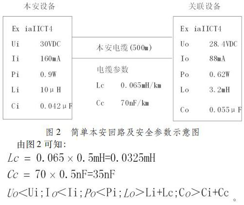 通過(guò)計(jì)算可知,本回路的安全參數(shù)均滿足不等式(1) ~ (5) ,因此本回路能通過(guò)本安回路計(jì)算,可以直接用于防爆區(qū)。