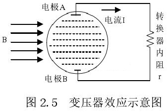 從上圖 2.5 中可以觀察到兩個電極、勵磁線圈、轉換器內(nèi)阻之間形成了一個閉合回路,將此回路稱之為初級繞組,從理論上進行分析,磁力線 B 應當平行于勵磁線圈所產(chǎn)生的磁感應線,但在實際的應用過程中由于工藝差異,因此無法達到理想狀態(tài),會產(chǎn)生磁力線穿過勵磁線圈磁感應線的情況,此時將會產(chǎn)生相應的感應電動勢,將此部分感應電動勢稱為變壓器效應。此效應同樣滿足于楞次定律,利用楞次定律進行計算可得如下電動勢: