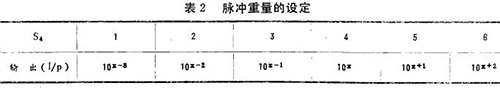 脈沖輸出有四種通用類型:高速電壓脈沖。晶體管開關(guān)脈沖、電磁計數(shù)器驅(qū)動脈沖和水銀繼電器驅(qū)動脈沖。這些類型的選擇用S6, S7,插頭按表1插入有關(guān)位置。
