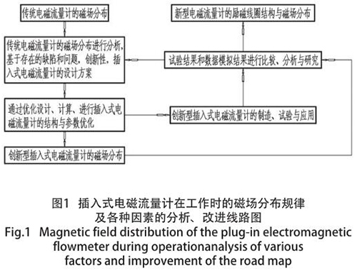 dn80泥漿流量計(jì)因其特殊的結(jié)構(gòu)形式,致使其抗干擾能力較弱、準(zhǔn)確度偏低以及瞬時(shí)流量波動(dòng)過(guò)大等不良現(xiàn)象,但便于安裝、造價(jià)低廉、普遍應(yīng)用于大管道等特點(diǎn)而存在。為了發(fā)揮其優(yōu)勢(shì),消除其不利因素,對(duì)其內(nèi)部結(jié)構(gòu)及其相關(guān)技術(shù)參數(shù)進(jìn)行優(yōu)化設(shè)計(jì),從而使其準(zhǔn)確度能夠達(dá)到 ±1% FS,使抗干擾能力得到極大地增強(qiáng)。本文主要通過(guò)優(yōu)化設(shè)計(jì)、選擇材料和試驗(yàn),使dn80泥漿流量計(jì)的穩(wěn)定性和準(zhǔn)確度大幅度提高,并提出解決措施,對(duì)實(shí)際應(yīng)用具有參考價(jià)值。分析與研究程序圖如圖 1 所示。