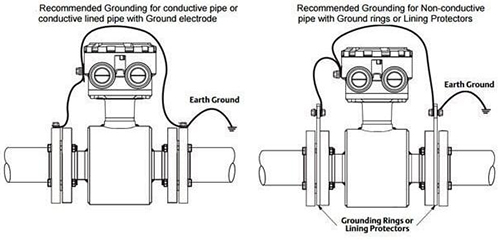 正確安裝流量管對于稀硫酸流量計中正確的SG至關(guān)重要。對于金屬工藝管道,正確安裝的流量管意味著不需要額外的溶液接地環(huán)或電極。對于非金屬管道或襯里配置,需要采用溶液接地方法,并且必須特別注意接地環(huán)或電極的連接和放置。下面提供了一些技巧,以確保將SG正確連接到電磁流量變送器。