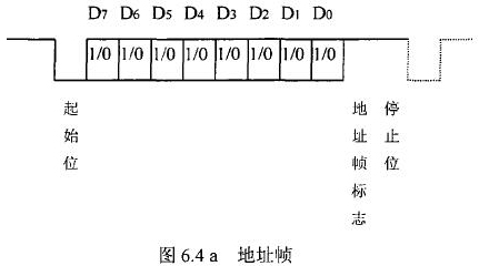 插入式電磁流量計等節(jié)點設(shè)備和站內(nèi)PC機間的通信采用異步串行通訊控制規(guī)程,并采用地址位喚醒握手協(xié)議。因此在協(xié)議中規(guī)定了傳地址和傳數(shù)據(jù)兩種不同的幀格式,如圖.64所示。地址幀和數(shù)據(jù)幀由11位構(gòu)成,幀格式為l位起始位,l位停止位,8位數(shù)據(jù)位,1位*9位。我們將*9位設(shè)定為“地址/數(shù)據(jù)指示位”,用來區(qū)分所發(fā)送/接受的幀信息是地址幀還是數(shù)據(jù)幀。*9位為1,表示PC機發(fā)送/接受的是“地址幀”*9位為O,表示主機發(fā)送/接受的是“數(shù)據(jù)幀”。命令幀與校驗和的發(fā)送格式與數(shù)據(jù)幀相同,因此可由數(shù)據(jù)幀演化得到。