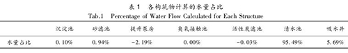 據(jù)統(tǒng)計,各構(gòu)筑物的水量占比如表 1 所示。
