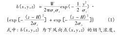 在循環(huán)流化床dn150渦街流量計(jì)煙氣脫硫排放效果監(jiān)測(cè)系統(tǒng)中,采用適于連續(xù)點(diǎn)源擴(kuò)散研究的高斯煙羽模型 。此模型忽略重力影響,將風(fēng)力情況設(shè)定為水平風(fēng),不存在垂直地面風(fēng)。在保證較長(zhǎng)時(shí)間內(nèi)風(fēng)向、風(fēng)速、大氣穩(wěn)定度等環(huán)境因素均處于穩(wěn)定狀態(tài)的基礎(chǔ)上,構(gòu)建高斯煙羽模型,可仿真循環(huán)流化床dn150渦街流量計(jì)排放煙氣中二氧化硫沿下風(fēng)向擴(kuò)散的濃度分布,該模型滿足: