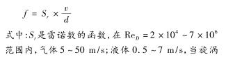 發(fā)生體的形狀和尺寸一定時(shí),S r 可視為常數(shù),渦街頻率與體積流量成比例關(guān)系,不受流體物理性質(zhì)和組份變化的影響。