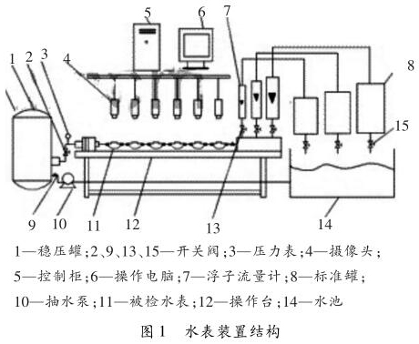 水表檢定裝置是全自動(dòng)水表校驗(yàn)裝置,水表檢定裝置以計(jì)算機(jī)為核心,它在需要檢定水表上方安裝攝像裝置,連接到圖像采集和高速計(jì)算器中,計(jì)算器可以識(shí)別水表指針的流量數(shù)值,自動(dòng)控制水流量,實(shí)現(xiàn)水表檢驗(yàn)的全自動(dòng)化,針對(duì)水表檢定裝置存在的問題提出解決方案,減少水表檢定裝置在使用過(guò)程中出現(xiàn)質(zhì)量問題,讓水表檢定裝置可以不斷完善。