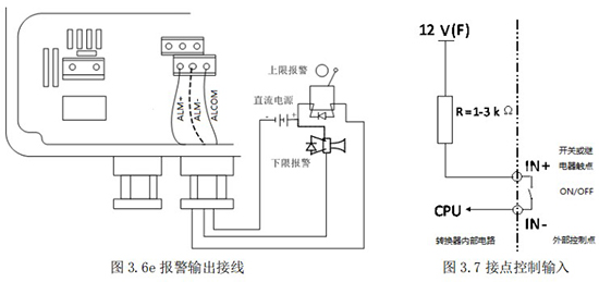 3.4.5 頻率(脈沖)、上下限報警、流向標示等輸出均為集電極開路的電平輸出信號。