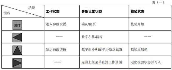 (3)標況流量計算公式(若補償后單位為 U.0):(4)標況流量計算公式(若補償后單位為 U.1):注:標況指 20℃,1 標準大氣壓三、一體化液晶顯示表頭參數(shù)設置操作說明(V03Z)1、鍵盤按鍵說明2、 顯示窗字符說明注:表中 x 代表“0”或“1”;Zn:標準狀態(tài)下(20℃,1 標準大氣壓),被測氣體的壓縮系數(shù),Z:工作狀態(tài)下被測氣體的壓縮系數(shù)3、 操作說明3.1、本儀表表頭采用自導引式和菜單式相結(jié)合的參數(shù)設置方式,所謂自導引式參數(shù)設置方式就是用戶在進入菜單 00 項后,表頭中的微電腦會自動導引用戶去設置需要設置的參數(shù)。另外,用戶也可以通過菜單模式分別對各組參數(shù)進行設置。蒸汽測量菜單框圖如下:3.2、參數(shù)設置約定:在設置各項參數(shù)時,提示符閃動代表該項參數(shù)沒有設置完或者尚未確認,可以通過按SET 鍵來確認或者按→鍵退出;提示符不閃動代表該項參數(shù)已設置完并確認,此時可以通過按 SET 鍵翻頁或者按→鍵退出。進入?yún)?shù)設置時,需要輸入密碼(6 位)并確認進入,為了防止誤進入?yún)?shù)設置菜單,保證儀表正常工作,在設置密碼時,使用↑鍵調(diào)數(shù)時不能循環(huán)調(diào)數(shù),只能單次調(diào)數(shù),只有密碼輸入正確進入各項參數(shù)設置菜單后才可以對各位循環(huán)連續(xù)調(diào)整數(shù)據(jù)。3.3、儀表參數(shù)設置舉例:儀表出廠前各項參數(shù)已設置好,用戶無需設置。如果用戶需要設置某項參數(shù),請參照以下步驟,例如修改刻度流量值 QT:在工作狀態(tài)下,按 SET 鍵,顯示屏顯示 P,數(shù)字位為全零,8 秒鐘若無操作,自動返回工作狀態(tài)。輸入密碼 :按數(shù)字↑鍵和左移←鍵,輸入密碼數(shù) xxxxx(出廠時默認密碼為 000123),↑鍵調(diào)各位數(shù)字 0-9,每按 ←鍵一次數(shù)字向右循環(huán)一位,可通過多次按←鍵對整段數(shù)字清零,按→鍵可以返回工作狀態(tài)。菜單選擇項:按 SET 鍵確認,顯示屏顯示如右圖所示,末行“00”閃動調(diào)整該項值選擇不同參數(shù)設置菜單。該例直接按 SET 鍵進入菜單 00 項設置刻度流量:QT 閃動,*一步:*先進行小數(shù)點調(diào)整,可以通過←鍵對參數(shù)快速清零或者通過↑鍵進行小數(shù)點調(diào)整,調(diào)整完畢,按 SET 鍵確認(QT 仍閃動);*二步:數(shù)值調(diào)整,可以通過↑鍵對每位數(shù)字進行調(diào)整,按 ←鍵一次數(shù)字向右移動一位,調(diào)整完畢,按 SET 鍵確認,QT 停止閃動,該項參數(shù)設置完畢,可進行下一項參數(shù)設置或者退出另外,單位設置 U.X 和補償方式設置 dX 通過↑鍵調(diào)整修改。3.4、校驗項說明: 儀表出廠前,溫度和壓力通道已校驗設置好,無需用戶重新校驗。校驗通道有密碼保護,廠家不對外開放,如果需要重新校驗溫度或者壓力通道,請專業(yè)人員與廠家技術人員聯(lián)系。4、計算公式說明4.1、蒸汽測量計算公式(1)渦街流量儀表工況體積流量計算公式:(2)密度 d,單位 Kg/m3(3)質(zhì)量流量計算公式,單位 Kg/h:(4)質(zhì)量流量計算公式,單位 t/h:4.2、氣體測量計算公式----標況指 20℃,1 標準大氣壓(1)渦街流量儀表工況體積流量計算公式:(2)對比壓縮系數(shù) d(Zn/Z),單位 1(3)標況流量計算公式,單位 Nm3/h:P1—工況絕壓,PN—標況絕壓(Mpa),T1—工況熱力學溫度,TN—標況熱力學溫度(K)