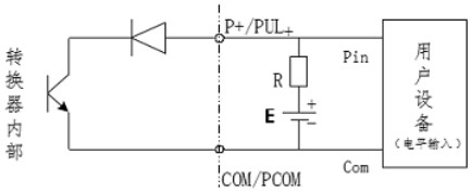 PUL+/ P+、ALM+(AH)、ALM-(AL)和 PDIR(FDIR)均為集電極開路(OC 門)輸出(參閱圖 3.6b、3.6d,用戶接線時(shí)必須參照如下電路外接電源和負(fù)載: