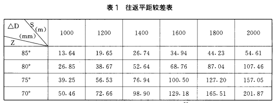 應(yīng)當(dāng)指出:只有計算Dm,方可進(jìn)行同邊往、返平距D往、D返的比較,符合限差取其D往、D返的比較,符合限差取其D往、D返平均值作為測距成果。