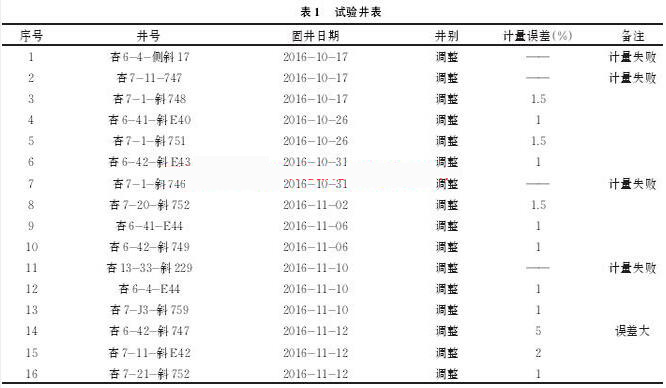 通過現(xiàn)場(chǎng)多口井試驗(yàn),試驗(yàn)井如表1所示。污水流量計(jì)可以較為準(zhǔn)確地計(jì)量水泥車上水總量,防止替空、留水泥塞事故的發(fā)生。